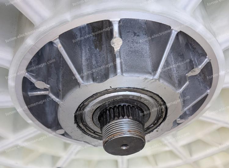 L'axe du tambour dépasse de l'arrière de la cuve (voir photo), mais j'ai beau tirer, pousser, donner des coups dessus (avec un torchon pour ne rien endommager) : rien ne bouge.