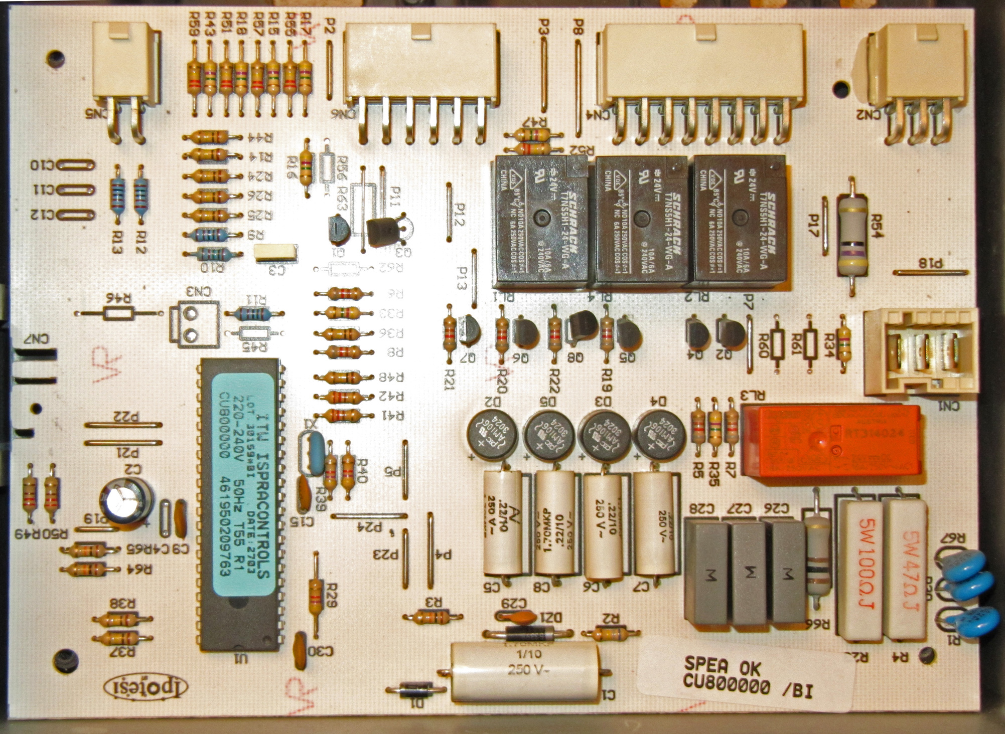 Je viens de réaliser le dépannage de la platine Whirlpool. Commencer par remplacer C1 et C2.