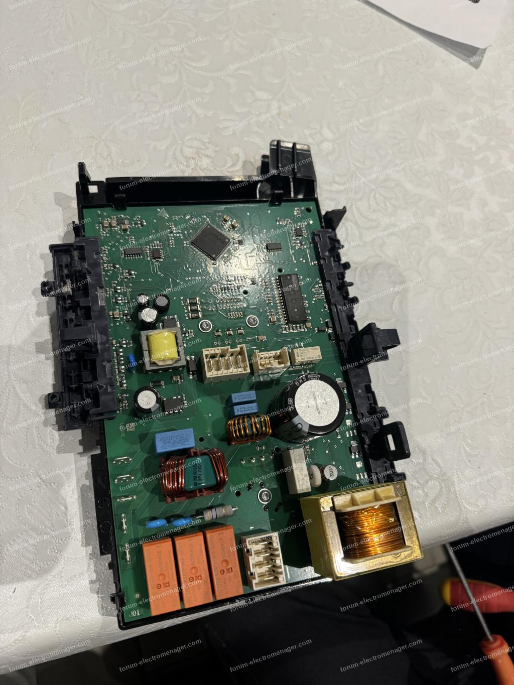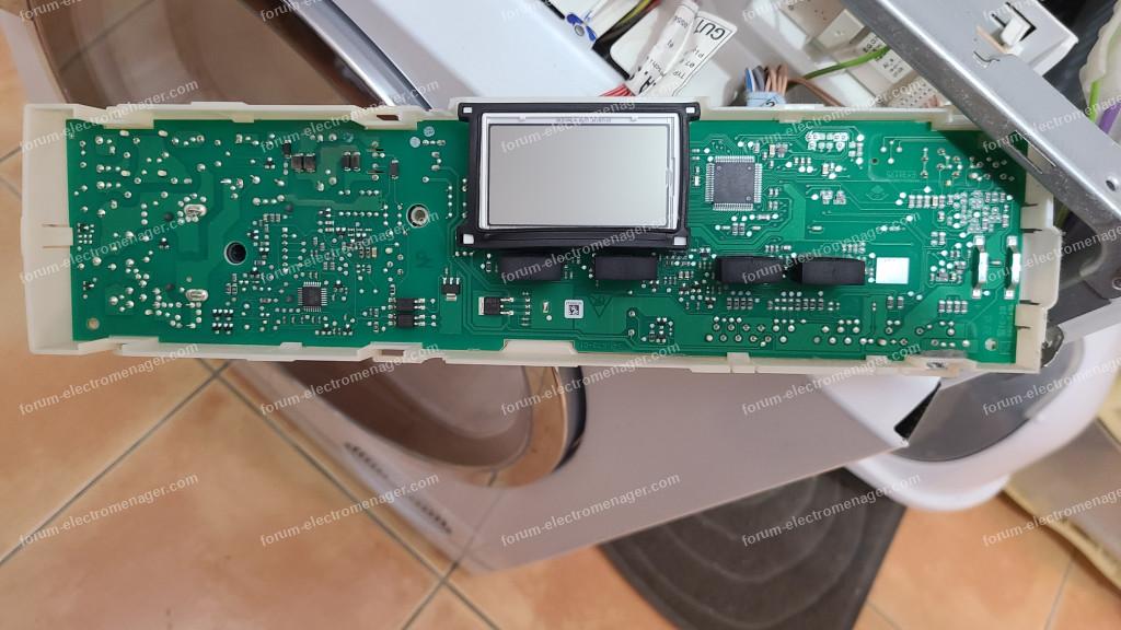La carte à réparer c'est celle derrière le bandeau de commande, pas celle derrière au fond en bas de la machine...