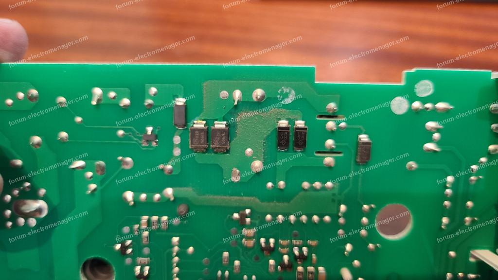 , plus rien ne s'affiche. le 220V arrive bien a la carte de puissance mais après je ne sait vérifier aucun des composant ne semble détérioré visuellement est-il possible de m'aider a identifier le problème ? La Référence sur le lave linge est : WM14N207FFJe joint la photos de la carte.