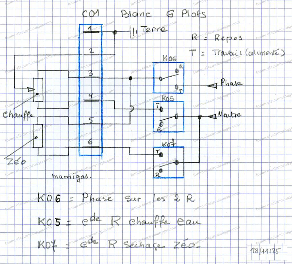 Après avoir revu le schéma de branchement des 2 résistances celles de chauffe et la zéolithe de séchage qui arrivent sur le connecteur C01 de la carte je ne vois pas le lien entre le débranchement de la zéo et le fonctionnement de la chauffe.... sauf sauf si un des chiens de garde de la détecte un problème sur la zéo (valeur ou isolement par rapport à la terre) et coupe le relais K06 ; d'où mes questions dans le message précédent.