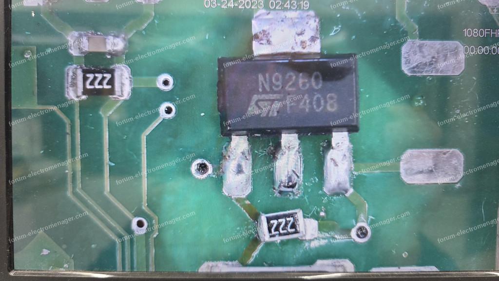 C'est la valeur réelle de la résistance de 2,2k soudée de travers sur les photos que je recherche (située entre le N9260 et la grosse résistance marquée 333).