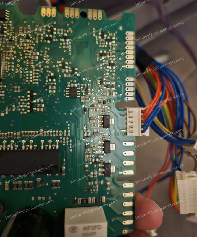 Une montrant carte démontée le positionnement du connecteur X10 "2 fils bleus 3 fils rouges"