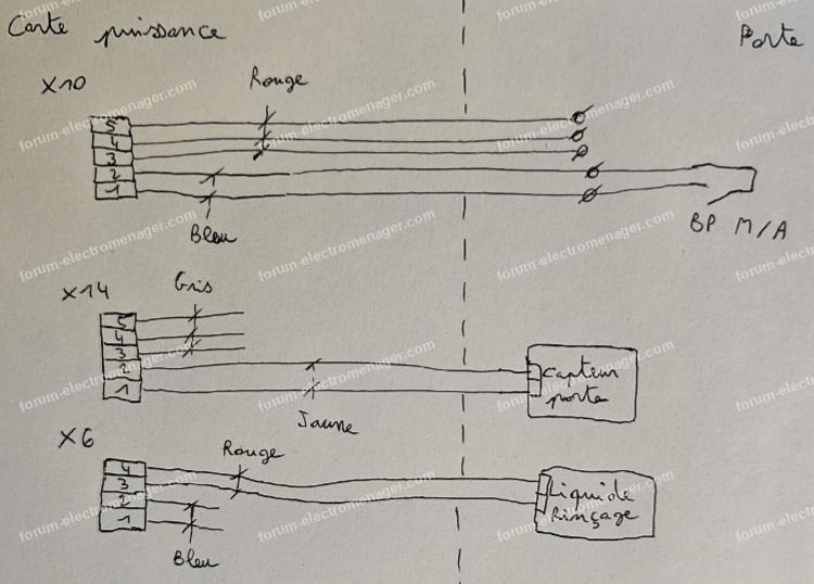 Je viens de contrôler les fils : les 3 fils rouges et les 2 fils bleus qui arrivent sur la porte viennent bien du même connecteur sur la carte de puissance, la continuité est OK.